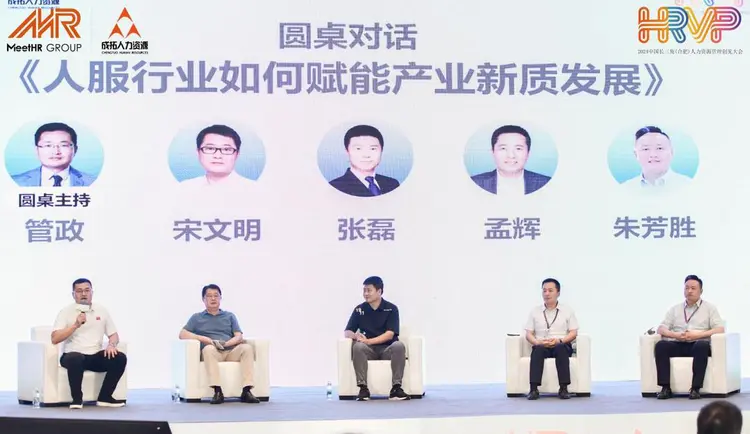 大会圆桌论坛由安徽省人力资源服务协会常务副会长管政主持,易德人力科技董事长宋文明,前华为招聘总监张磊,智盛人力总经理孟辉,安徽邻几便利店有限公司总经理朱芳胜等嘉宾,围绕“人服行业如何赋能产业新质发展”话题进行了观点与经验的交流、思想与智慧的碰撞,对人力资源服务业在“新质”人才和“新质”企业之间的发展机遇和挑战进行了深度剖析和解读,提出了很多有见地、有价值的意见建议。